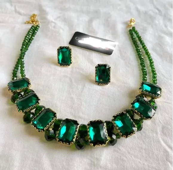 Product details of High Quality Green With Stones Choker Necklace Set For Girl & Woman